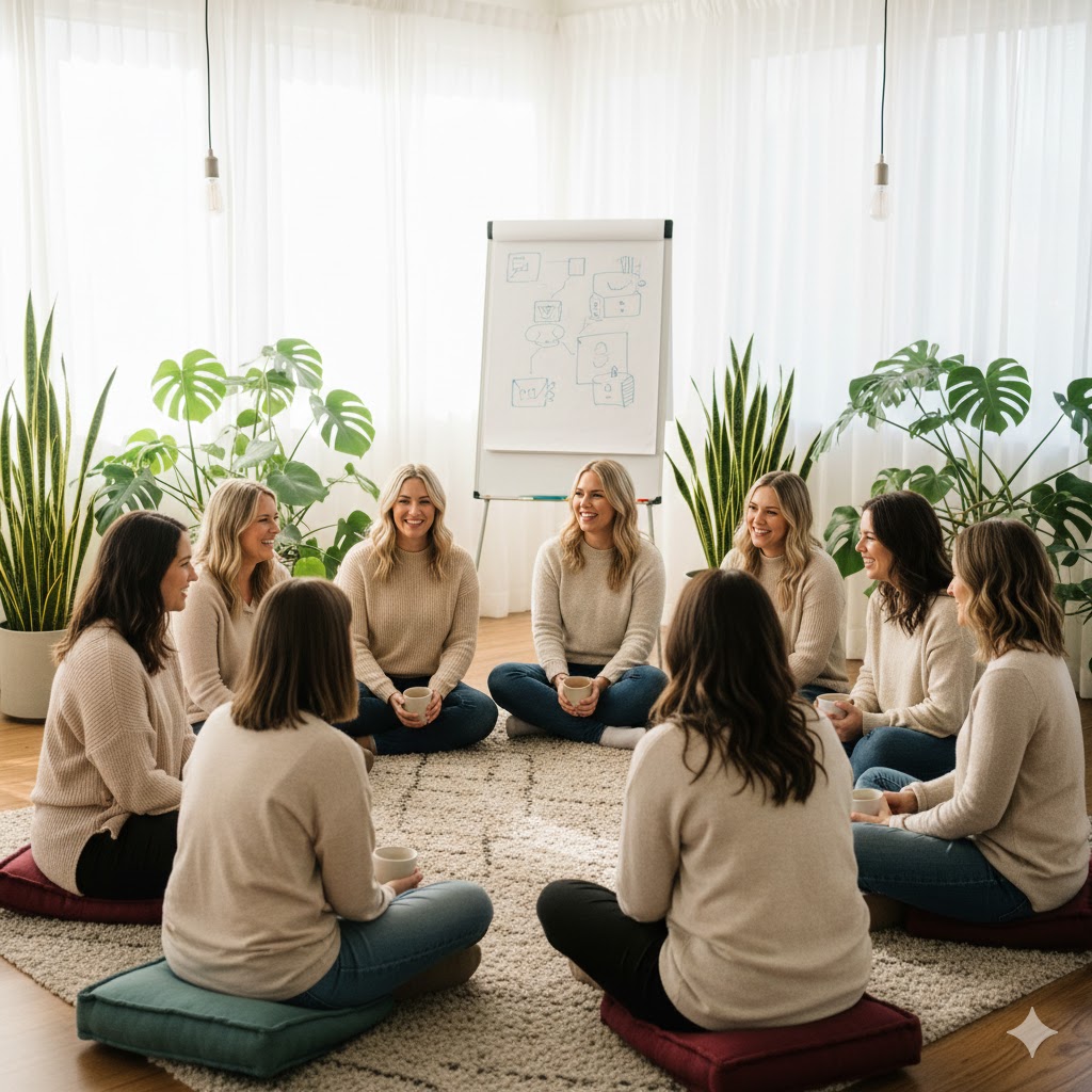 הערך: לעבור ממצב של "טייס אוטומטי" והישרדות להנהגה של החיים. הקבוצה מייצרת מרחב בטוח לשיתוף ולמידה, והפגישות האישיות מאפשרות לנו לקחת את כל הכלים וליישם אותם בדיוק על "הקנבס" הפרטי שלך (הבית, הילדים והקריירה שלך).